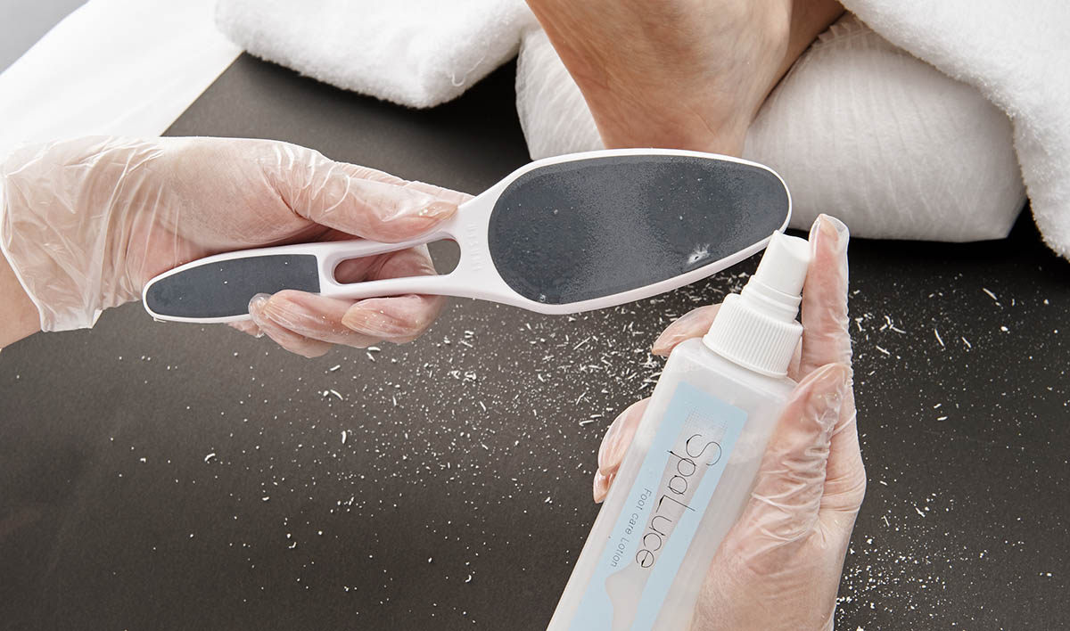 フットケアの概念を変える! SpaLuceフットケアローションは、潤いを与えながら角質をケアする時代の到来を告げる、フットケア専用ローションです。2015年の発売以来、ご好評をいただき、多くの皆さまから足底の変化に喜びと驚きの声をいただいています。